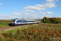 16Plan B Wir bleiben beim 29. Oktober 2024. Gute zwei Stunden später stand ich in der Urbacher Fotokurve für den TRI-Ersatzzug bereit. Dies ergab sich aus vorgenannter schlechter Wetterprognose für jenen Herbsttag. Ich plante auf dieser Basis einen Besuch, der dann mit einem kurzen Abstecher an der Remsbahn örtlich etwas abgewandelt wurde. Während die beiden 145 in dieser Lackierung monatelang die Ersatzzüge auf der Frankenbahn bespannten, war der Einsatz der 145-CL 201 an der Remsbahn seltener. Mit DPN 56706 Aalen Hbf - Stuttgart Hbf ließ der Zug Plüderhausen hinter sich um gleich Urbach zu passieren.